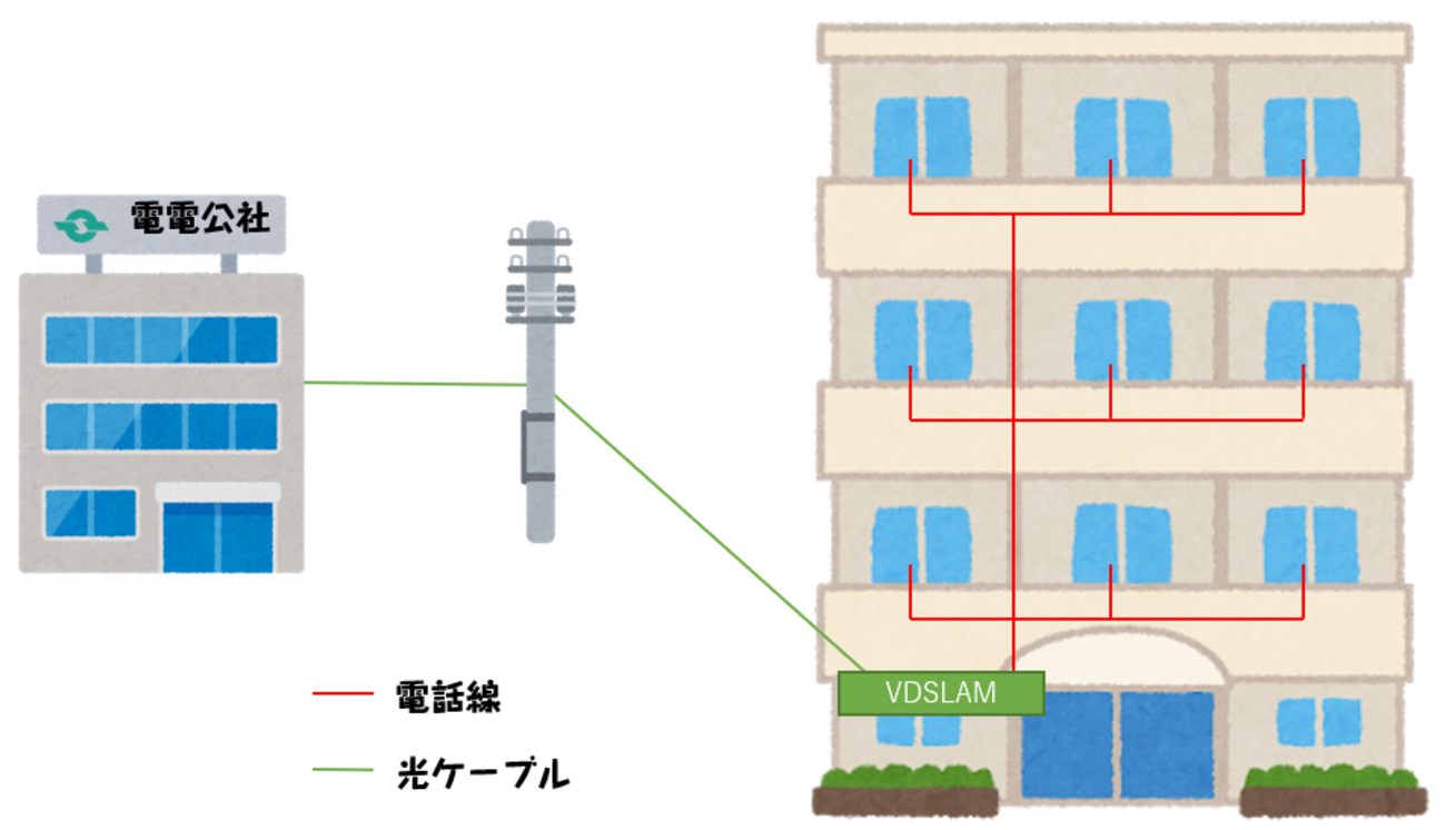 VDSLというのは、簡単に言えば電話回線を使ってネットを届ける技術です。もちろん遅いです。できるだけ避けましょう。